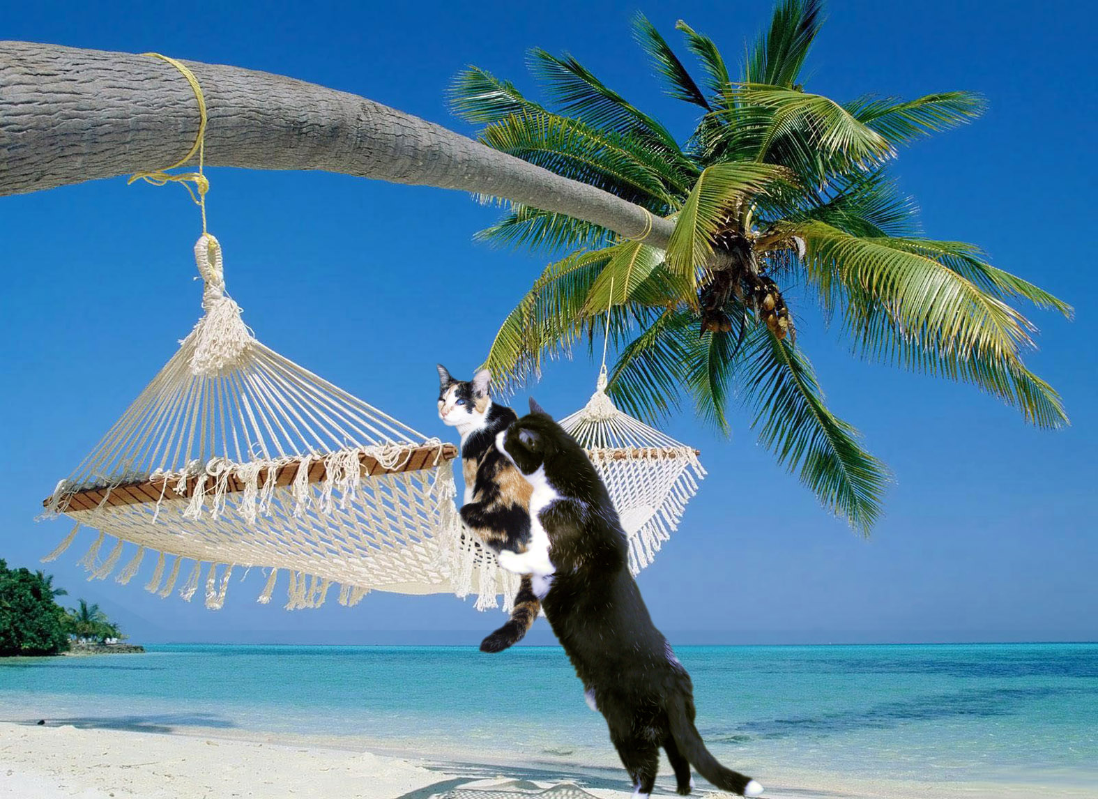 | Pie helps Lily into the hammock before collecting refreshments. |